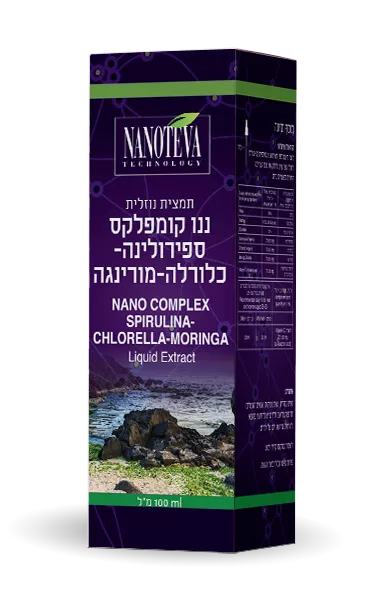 קומפלקס ספירולינה כלורלה מורינגה Spirulina של ננוטבע פורמולה יחודית של מיצוי נוזלי של אצות ותמציות צמחים.