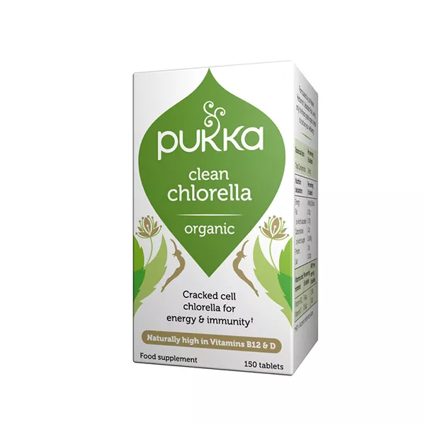 כלורלה אורגנית הגדלה במים מתוקים הנחשפת לאור השמש ללא חומרי הדברה, לא מהונדס גנטית.