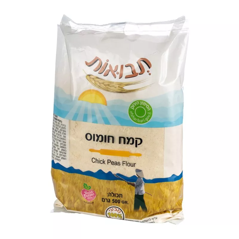 עשוי מגרגרי חומוס הנטחים בעודם בלתי מבושלים, כאשר מקבלים אותו בשמן מקבלים טעם דומה לפלאפל, יכול לשמש כתחליף לביצים,הקמח 100% גרגרי חומוס טבעי (גרגרים לא קלויים)