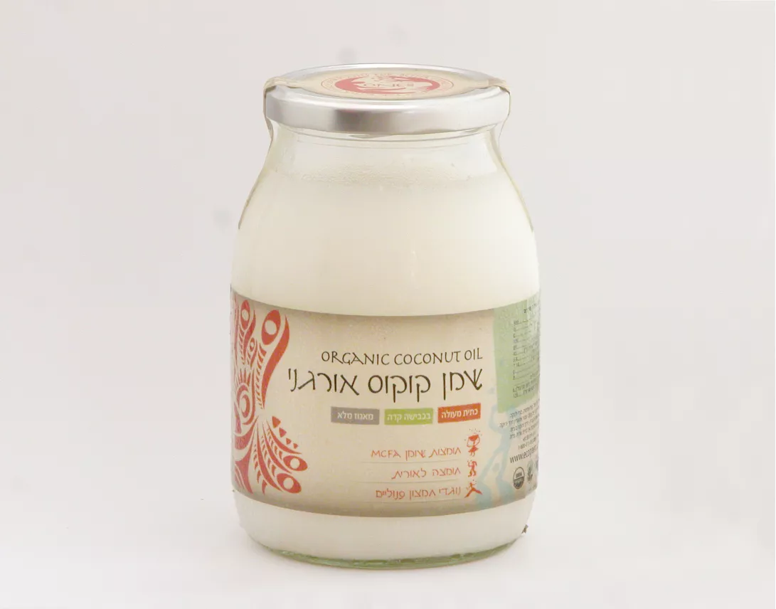 שמן קוקוס אורגני בכבישה קרה, כתית, מאגוז מלא, מפרויקט סחר הוגן.