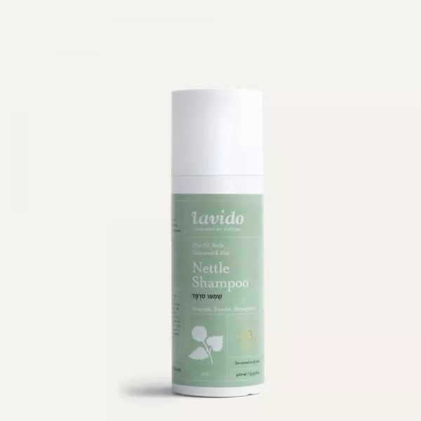 שמפו סרפד המכיל שילוב שמנים אורגניים המחזקים את השיער ומקלים בגירויים בקרקפת.
